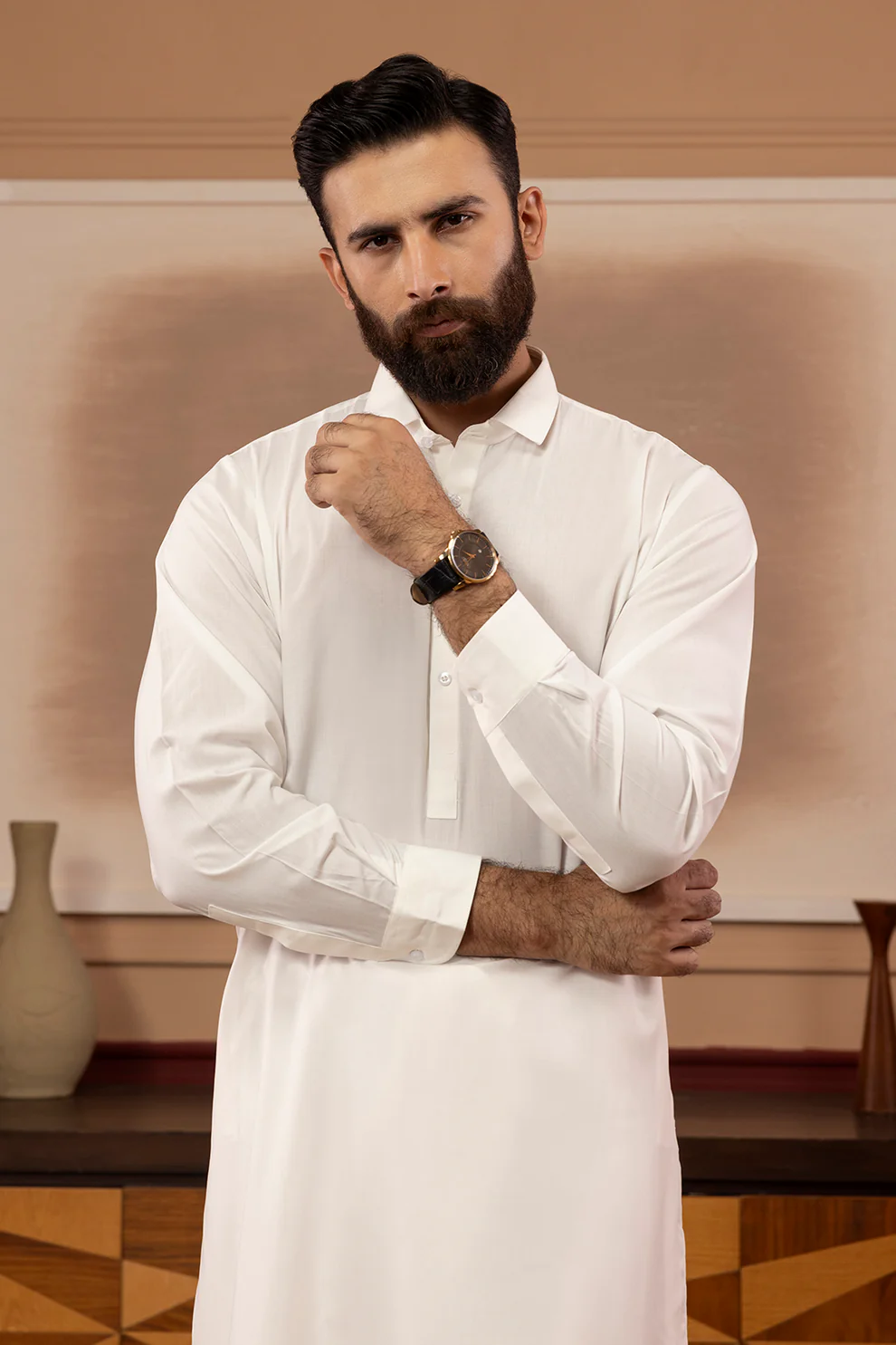Elevate your traditional wardrobe with the Express Shalwar Kameez in off-white, crafted from a comfortable blended fabric. Designed for men who appreciate classic Eastern wear, this set offers a refined look suitable for both casual and formal occasions. Its breathable material ensures all-day comfort while maintaining a sharp, polished appearance.